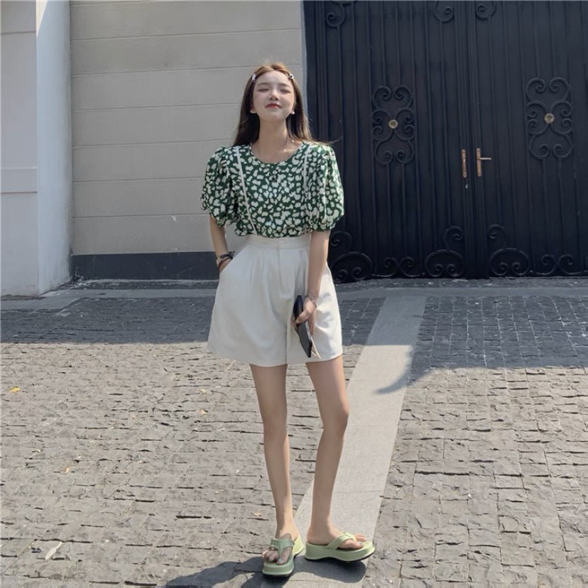 Set áo họa tiết quần short đùi yếm Ulzzang Style Hàng quảng Châu