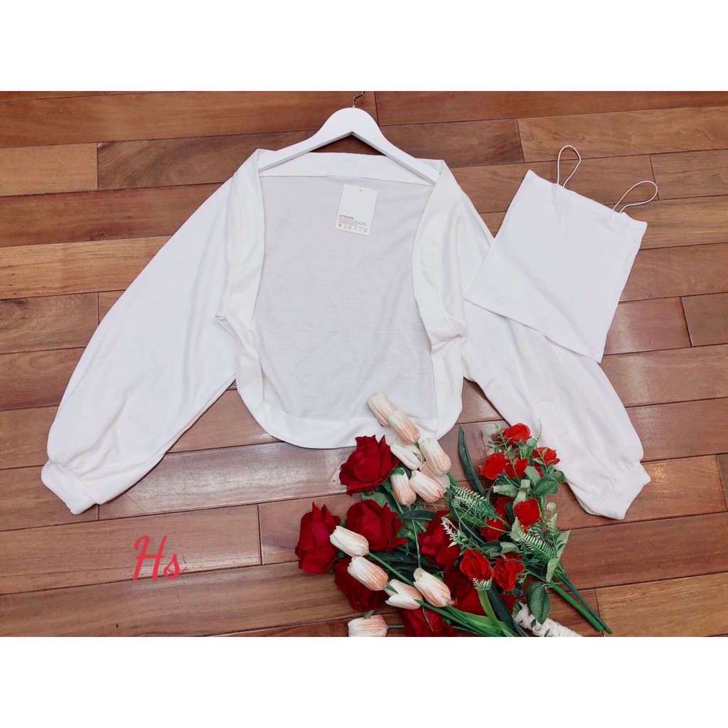 SET ÁO KHOÁC TAY BỒNG KÈM QUÂY TRẮNG