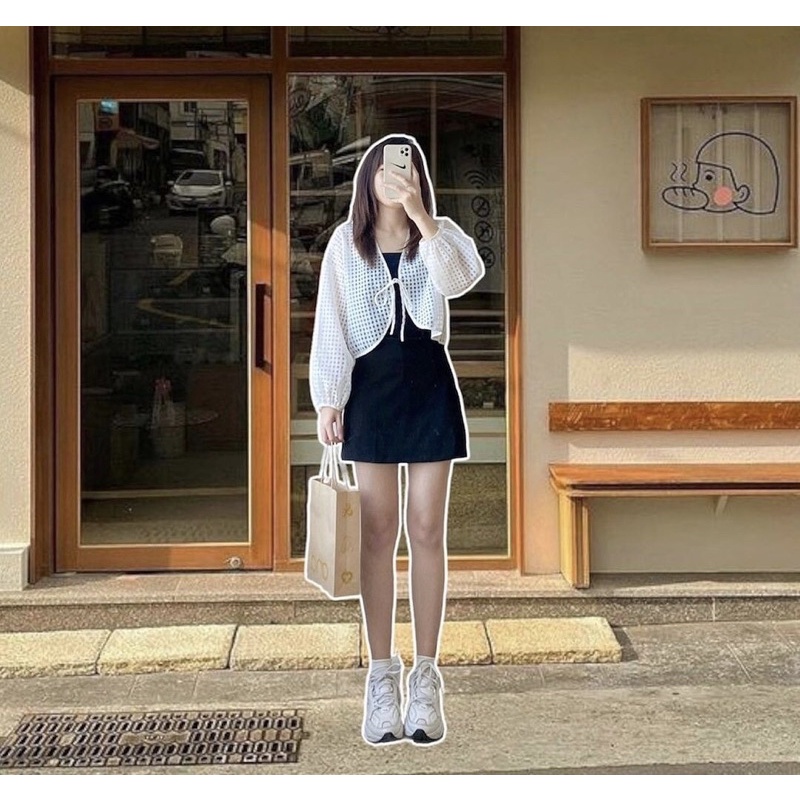 set gồm áo voan ngoài cùng áo hai dây bên trong nha,set mix cùng chân váy hay gì cũng đều xinh luôn nhé dáng crt mix cùng chân váy ăn gian chiều cao lắm ạ