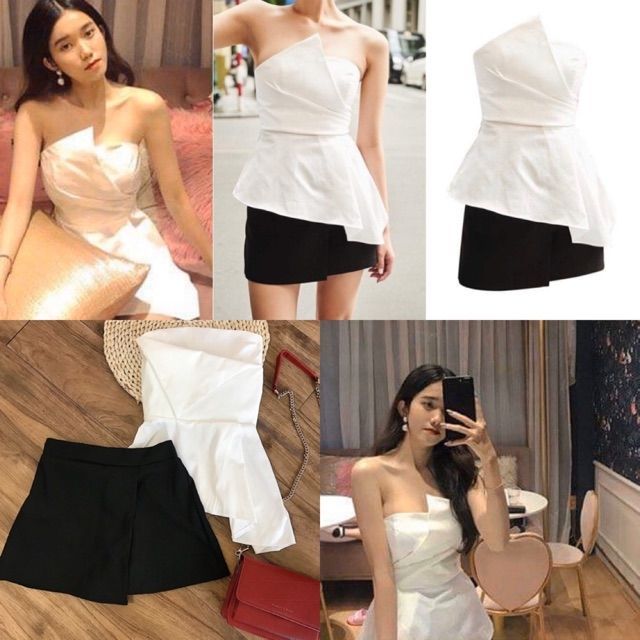 Thời Trang Nữ > Đồ liền thân > Quần yếm || SET ÁO ỐNG CUP NGỰC KÈM VÁY QUẦN TONE MÀU TRẮNG ĐEN