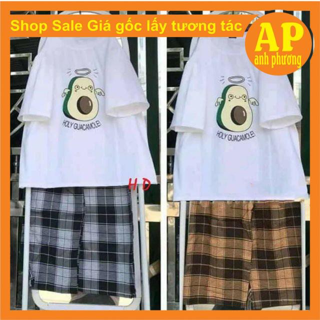 Sét áo QUẢ BƠ mix QUẦN KẺ💢Áo chất cotton mềm mịn in hình quả bơ siêu net💢quần kẻ ống rộng chất thô mềm💢freesize unisex