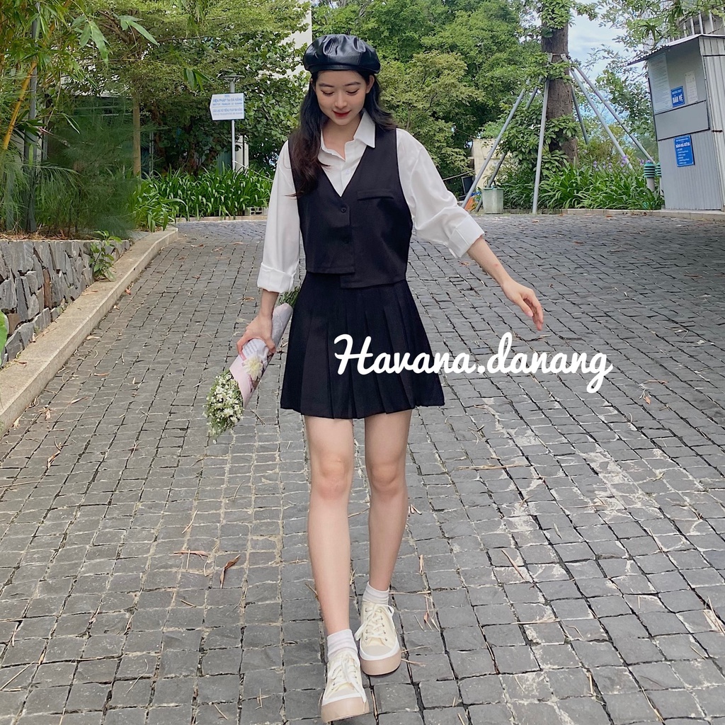 Set áo sơ mi kèm ghile khuy nút. Chất cát Hàn rất mềm mại , mặc thoải mái