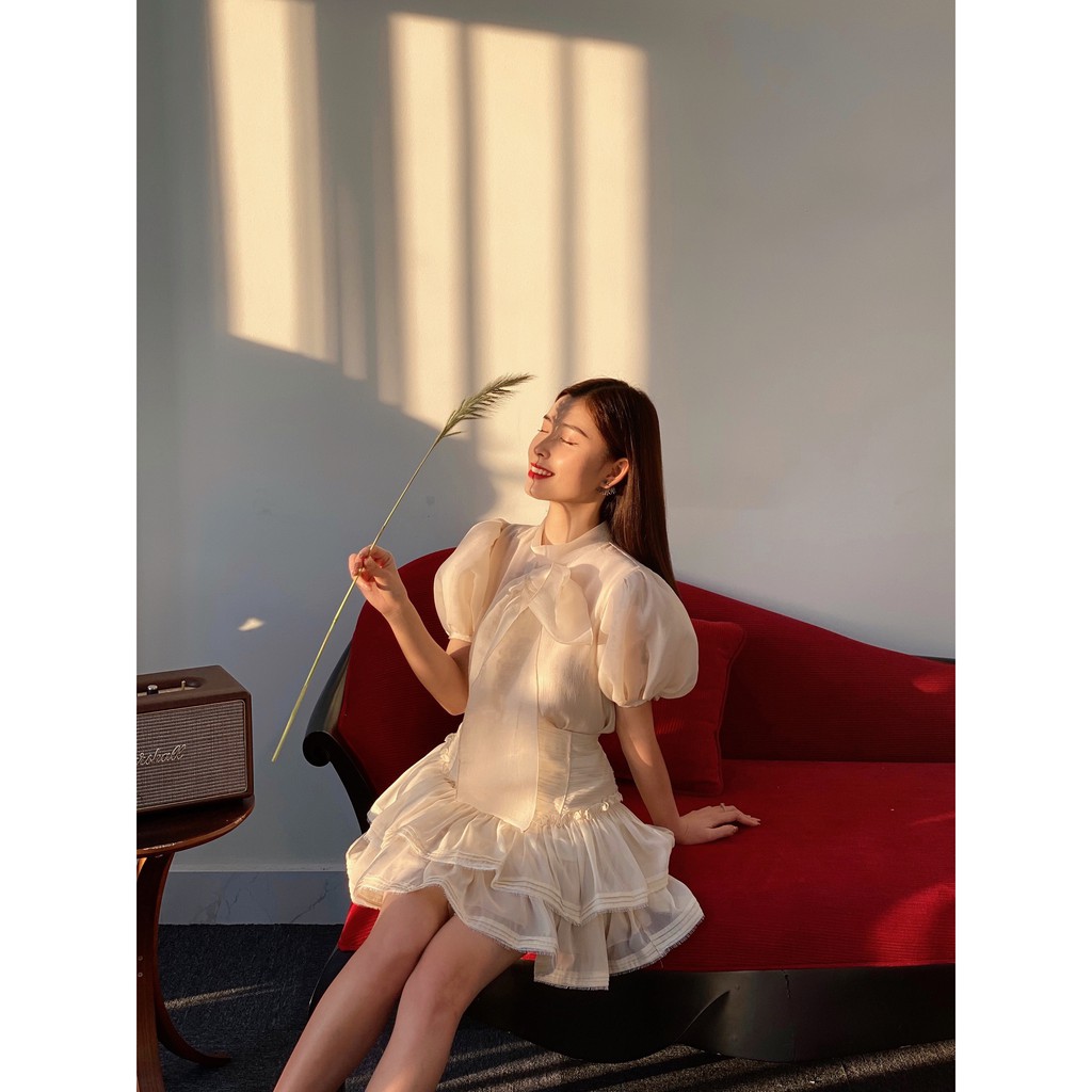 #Refresh bản thân với set đồ organza tơ tăm màu #milk vô cùng ngọt ngào và quyến rũ, thiết kế mới nhất trong tủ đồ màu hè 2021 của nhà #HUONG. Áo cổ nơ xinh yêu, với chiếc nơ bản to là điểm nhấn, kết hợp cùng chân váy mini xếp tầng điệu đàng, khoe đôi chân dài miên man.
