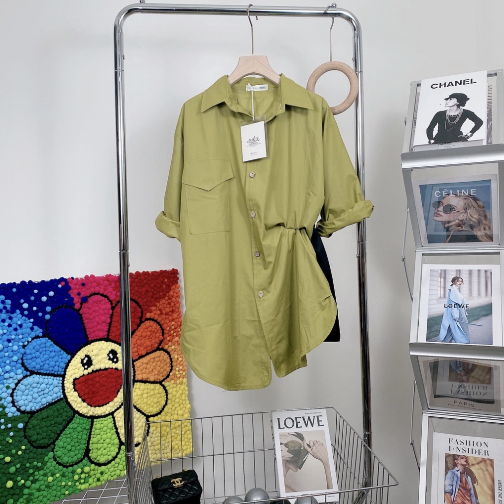 Giới thiệu Set áo sơ mi xanh cốm vạt bầu nắp túi quần short đùi đen BN209 0322