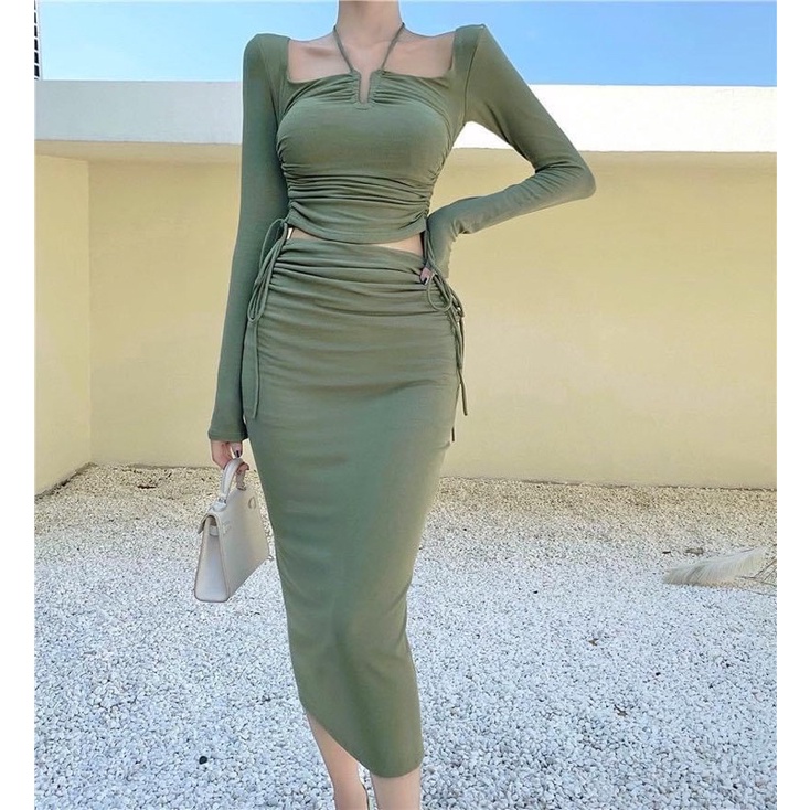 Thời Trang Nữ > Áo > Áo thun || Sét áo tay dài cột nơ + chân váy