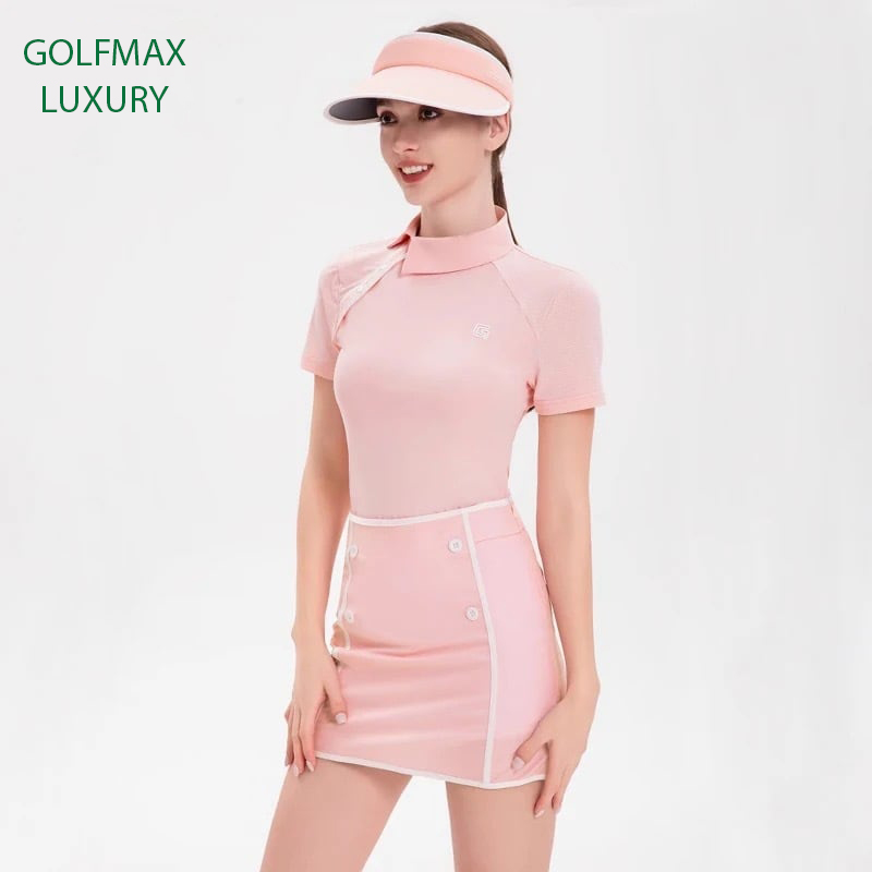 Full set thời trang golf nữ DK240054-DK240038 cao cấp đến từ thương hiệu DK với chất liệu làm từ Vải sợi Polyester+ Spandex cao cấp co giãn đàn hồi cùng khả năng thấm hút mồ hôi siêu đỉnh, đem lại trạng thái tốt nhất cho người chơi golf. Sét áo váy giúp golfer nữ xinh đẹp và nổi bật trên sân golf