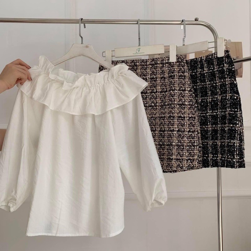 Thời Trang Nữ > Áo > Áo sơ mi || Set Áo - váy trễ vai chất đũi siêu xinh