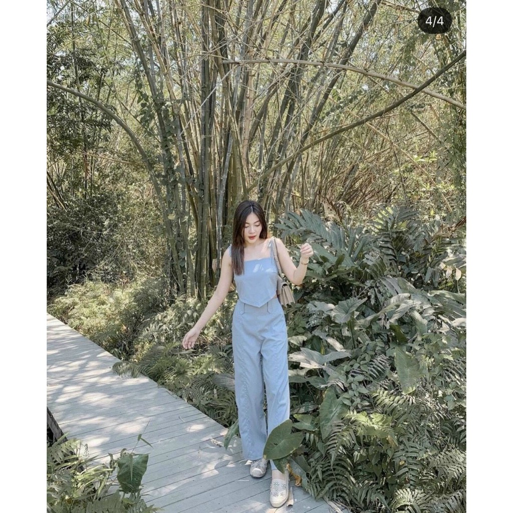 Thời Trang Nữ > Đồ liền thân > Quần yếm || Set áo xanh cổ yếm + quần suông