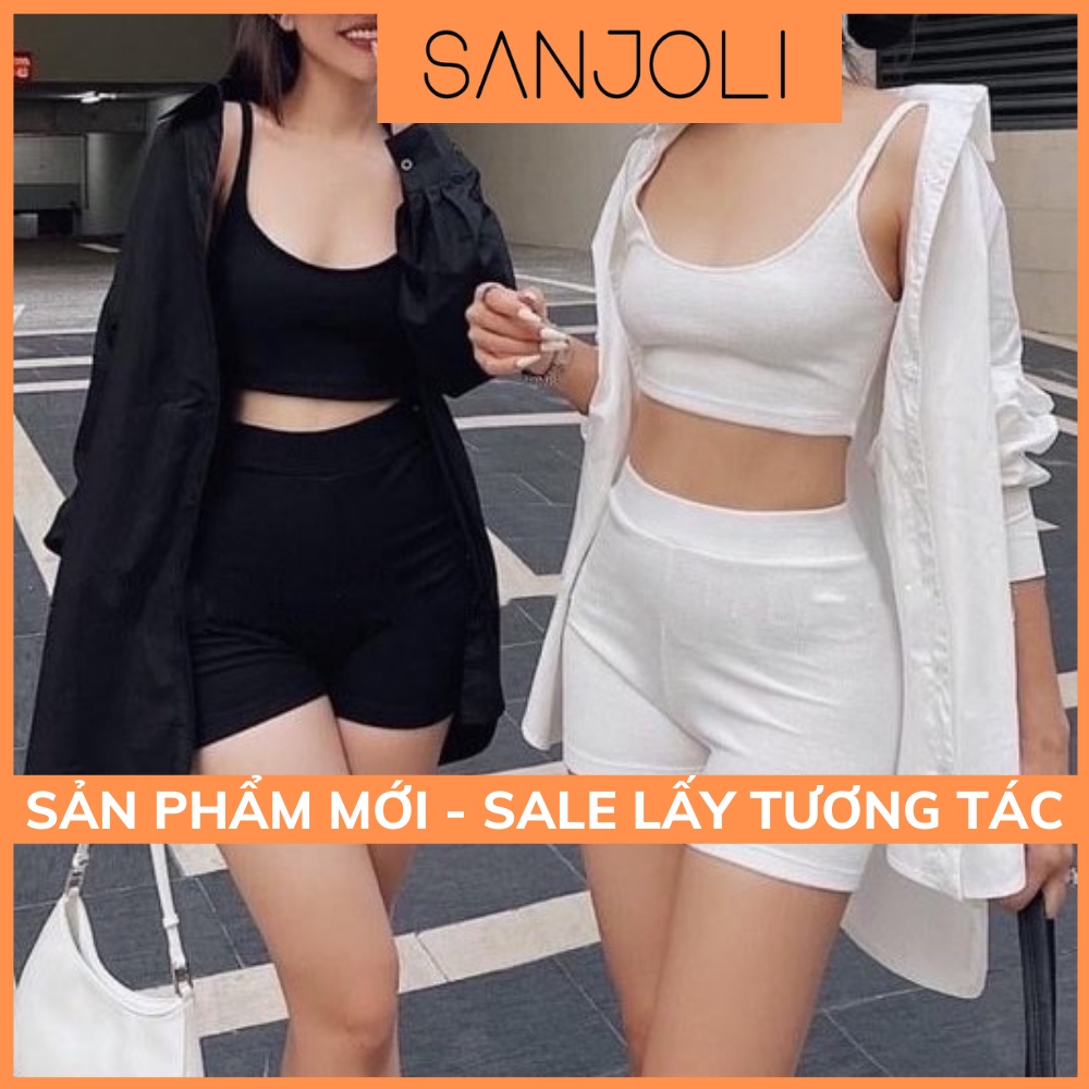 Thời Trang Nữ > Đồ liền thân > Khác || Set Áp Croptop SANJOLI Set Bộ Thể Thao Nữ Áo 2 Dây Phối Quần Đùi Biker Kèm Áo Sơmi Tay Dài Vải Mát Cá Tính AO045