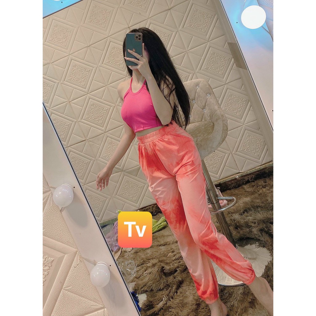 Sét bộ áo yếm khoét ngực trơn phối quần bo ống màu loang cực xinh , chất thun coton tici mềm mịn ( ảnh thật )