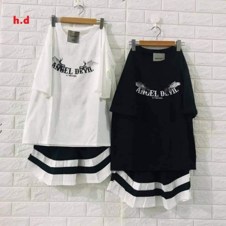 Giới thiệu ⚡Sét bộ đồ Angle thời trang nam nữ unisex⚡Áo thun tay lỡ chất cotton + quần V thun lạnh Freesize dưới 55kg