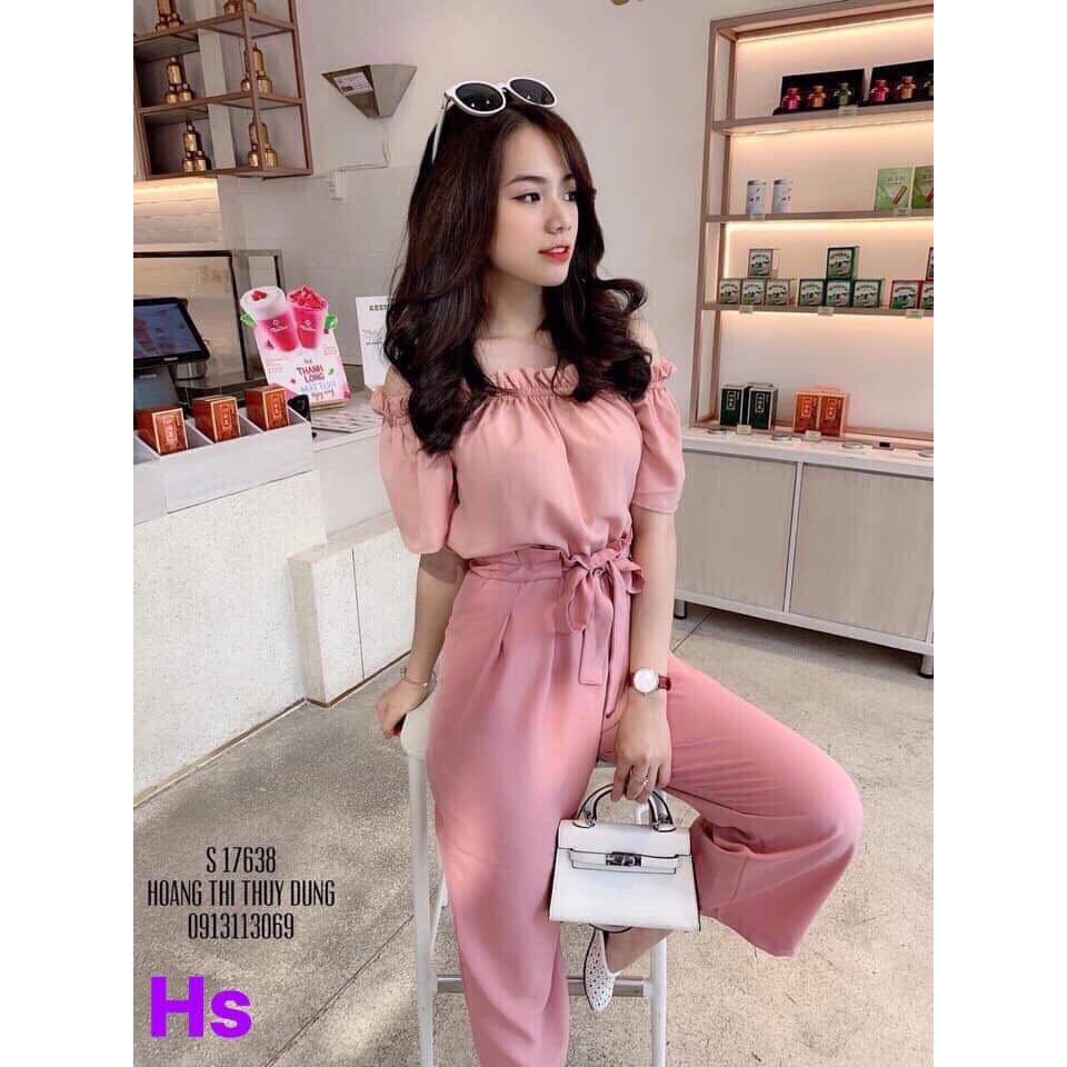 Giới thiệu Sét bộ trễ vai hồng áo trễ vai quần ống xuông kèm dây lưng chất liệu lụa mềm - HÀNG XỊN - SHOPQV