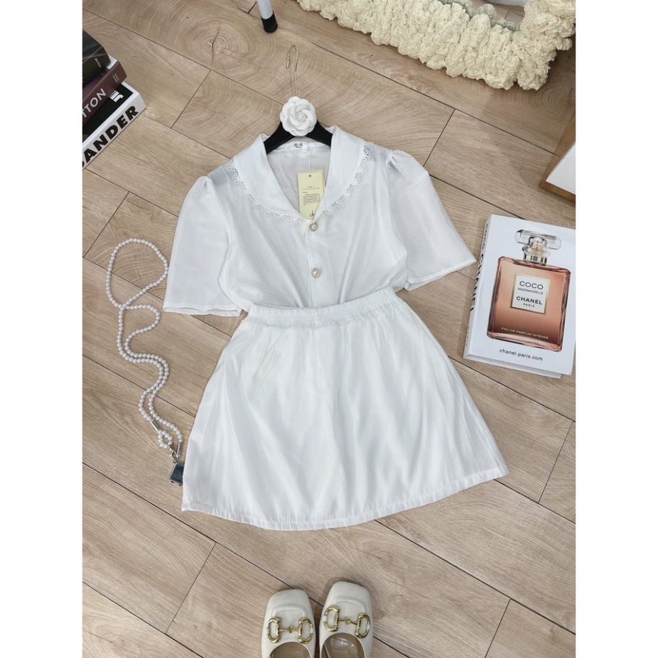 Giới thiệu Set chân váy tiểu thư trắng tinh khôi cúc ngọc viền ren LT190 0222