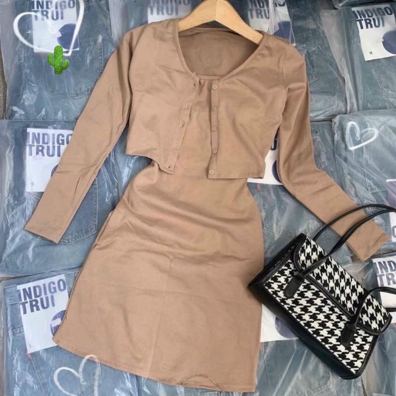 Thời Trang Nữ > Áo > Khác || Set đầm dây áo khoác ảnh thật