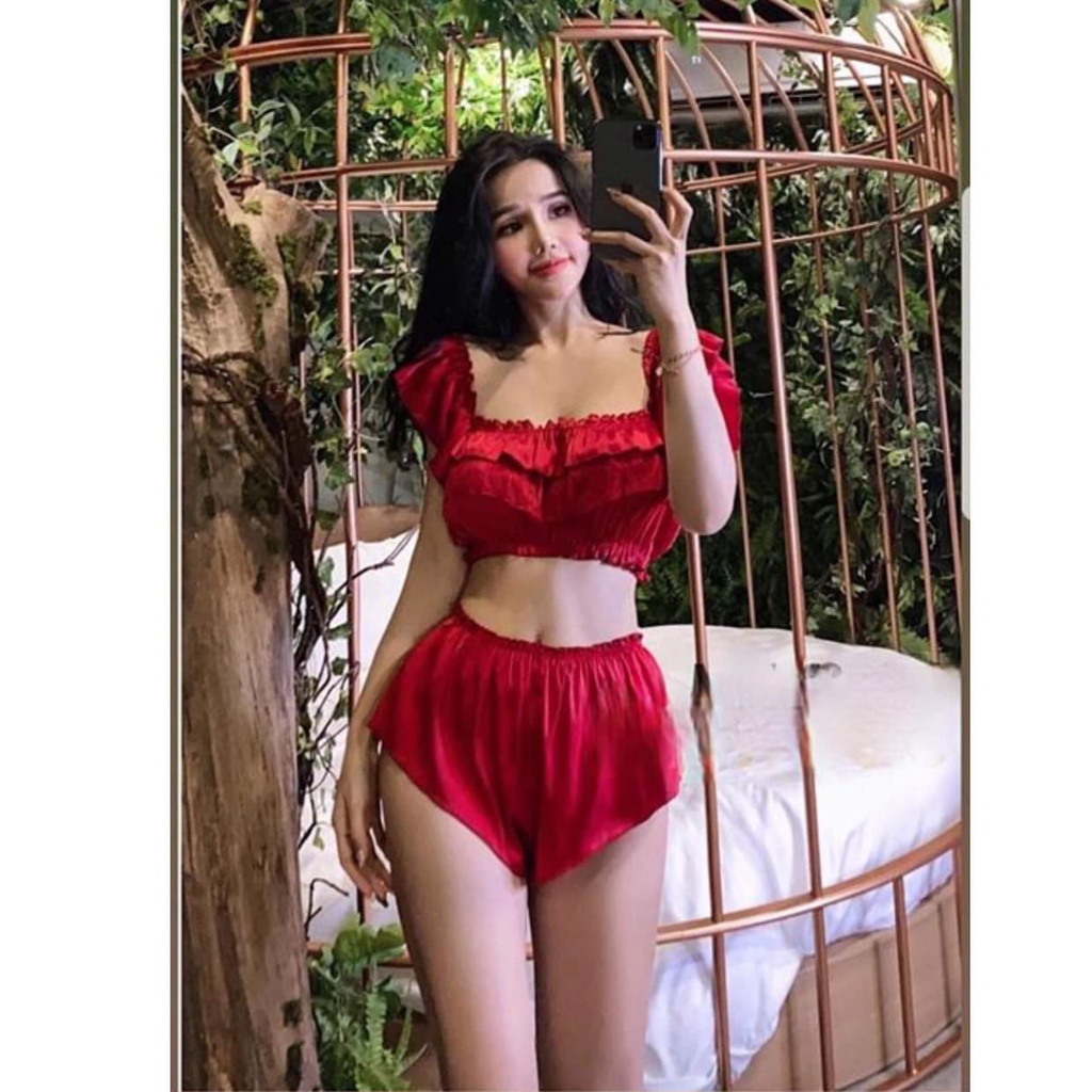 Thời Trang Nữ > Đồ ngủ > Khác || set đùi đỏ trễ vai
