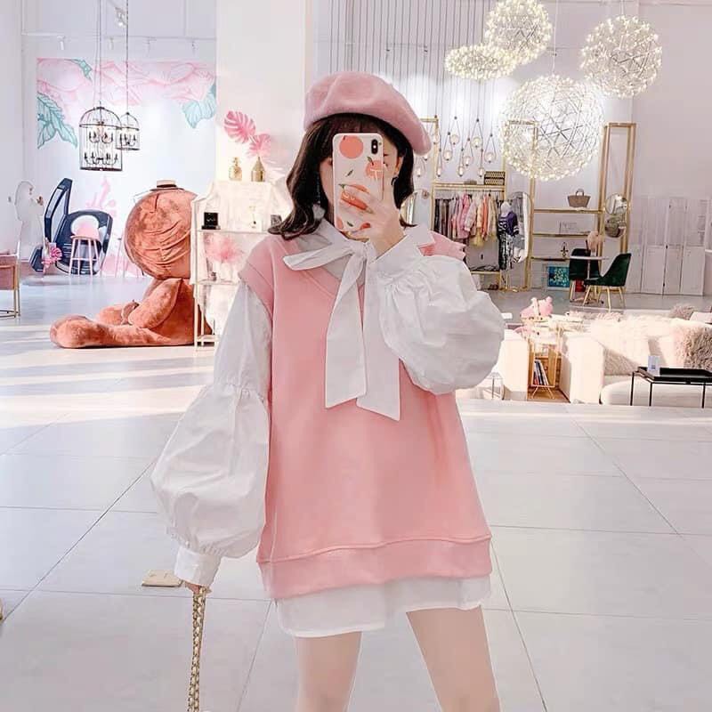Thời Trang Nữ > Áo > Áo sơ mi || set gile hồng + áo sơ mi nơ |hình thật chụp trải|