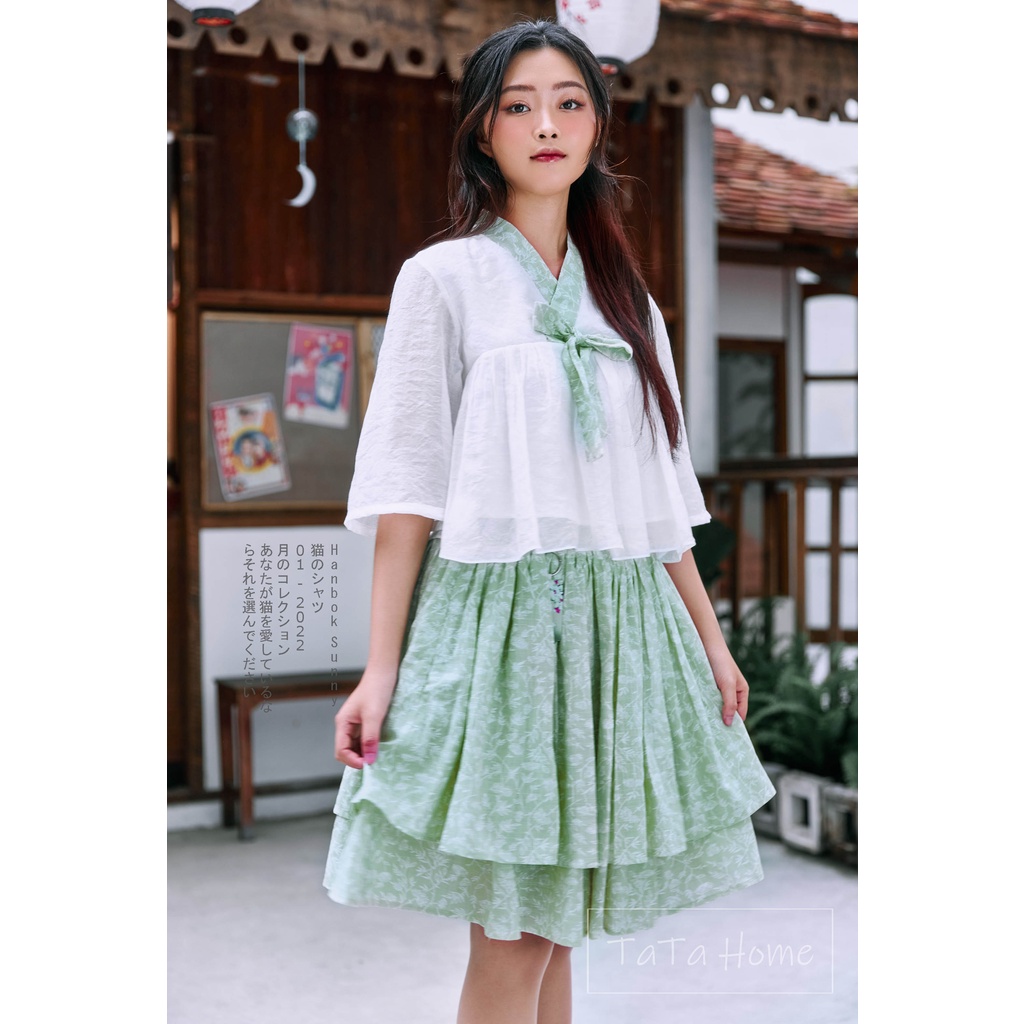 Giới thiệu Set Hanbok Sunny Cốm TaTa Home - Set áo Hanbok và chân váy xòe xếp ly phong cách cách tân