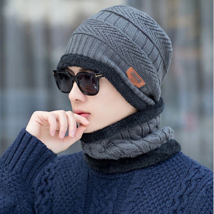 Set Mũ Len Beanie Và Khăn Choàng Cổ Giữ Ấm Cho Mùa Đông dành cho nam và nữ làm mũ đôi