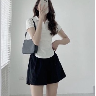Giới thiệu Set short kèm áo polo vạt bầu suông nữ ⚡ Casper.Store | FREESHIP | ⚡ Bộ quần đùi giả váy xếp li ống rộng phối polo cổ bẻ