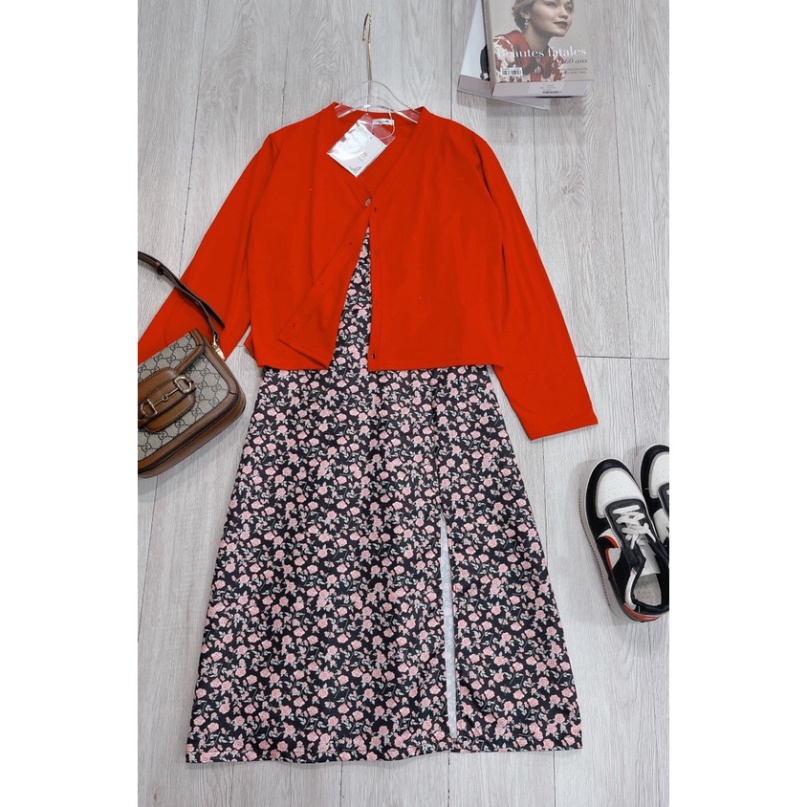 Giới thiệu Set váy hoa áo khoác ngoài mongtoghi 2 món váy 2 dây dáng xòe SL475 0322