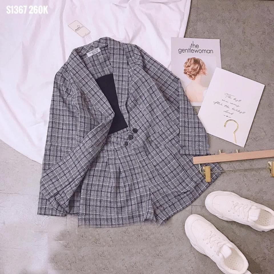 Giới thiệu Set vest kẻ caro cao cấp, set vest kẻ caro 3 món có túi kèm quần sooc SET91