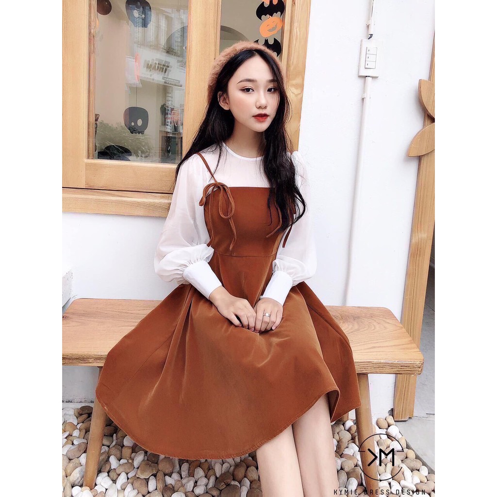 Set Vintage : Đầm yếm bò xoè + Sơ mi kiểu trắng cổ tròn tay bo Mặc nguyên set cực kỳ dễ thương luôn nha chị em hoặc nàng có thể tách rời để phối cùng item khác đều đẹp không tả nổi