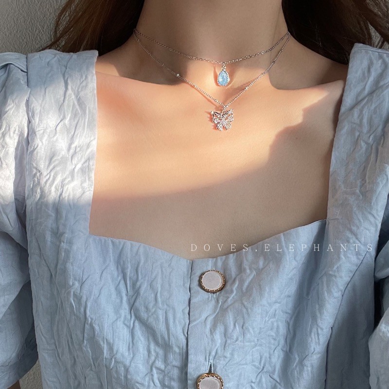 Sét Vòng Cổ & Bông Tai Mặt Bướm,Bạc 925 , bộ trang sức vòng cổ & bông tai bạc 925 thời trang – Hari Korea Accessories