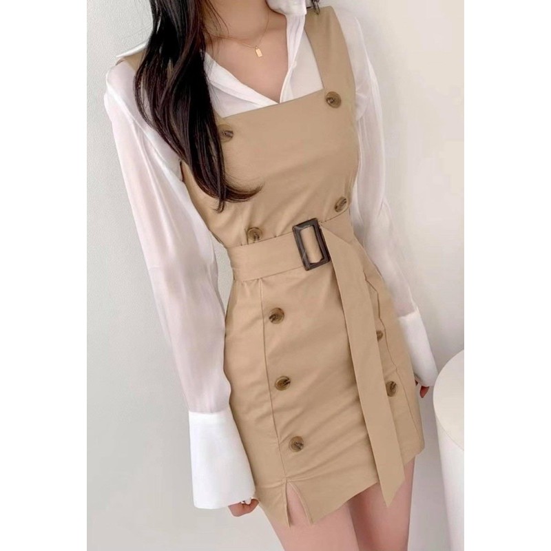 ➖Yếm phối 2 dãy nút và belt cực kì cá tính và sang trọng