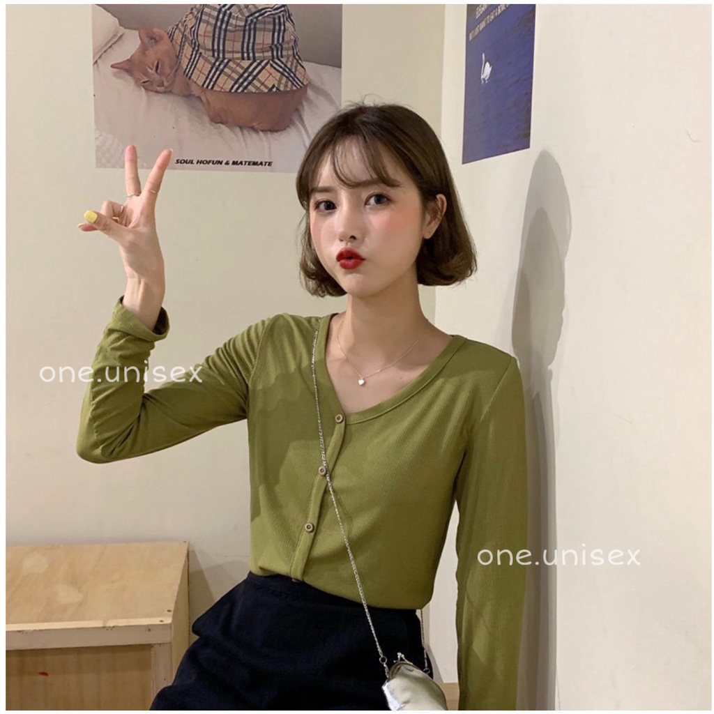 Thời Trang Nữ > Áo > Áo thun || (sỉ 49k-7 màu)Áo len tăm cổ tim khuy cài dài tay