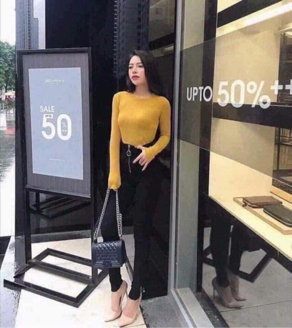Chất dệt siêu co giãn ôm body . Dáng áo basic. Năm nào cũng đủ màu để phối với jean hoặc quần legging, ống sớ.
