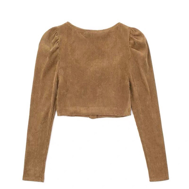 Giới thiệu [Sỉ tận xưởng]: Áo nhung tăm cổ vuông cúc đồng có video ảnh thật