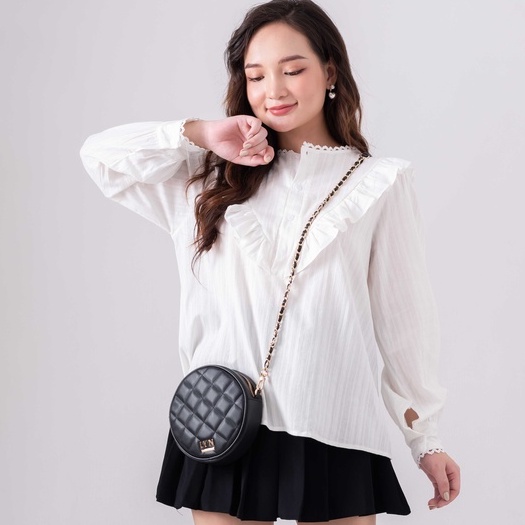 Thời Trang Nữ > Áo > Áo sơ mi || [SIÊU HOT] Áo sơ mi trắng cổ bèo viền tay xinh xắn, ảnh thật cuối