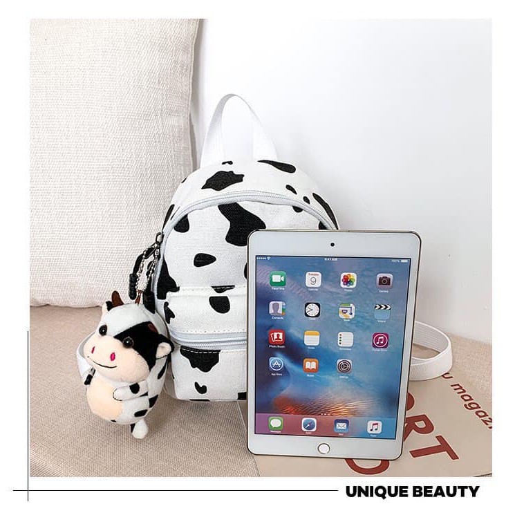 Giới thiệu [ SIÊU HOT] Balo nam nữ thời trang họa tiết bò sữa kiểu mới size mini, đôc đáo hàng chất lượng style kitishop