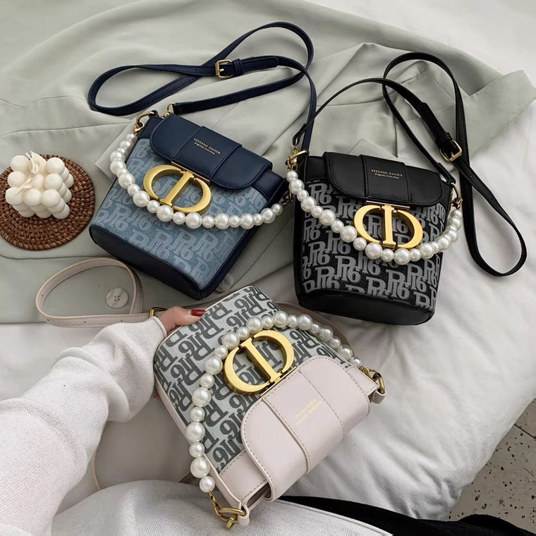 Giới thiệu [Siêu Sale] Túi xách nữ CD phối quai Ngọc sang chảnh 3 màu kèm quai đeo chéo