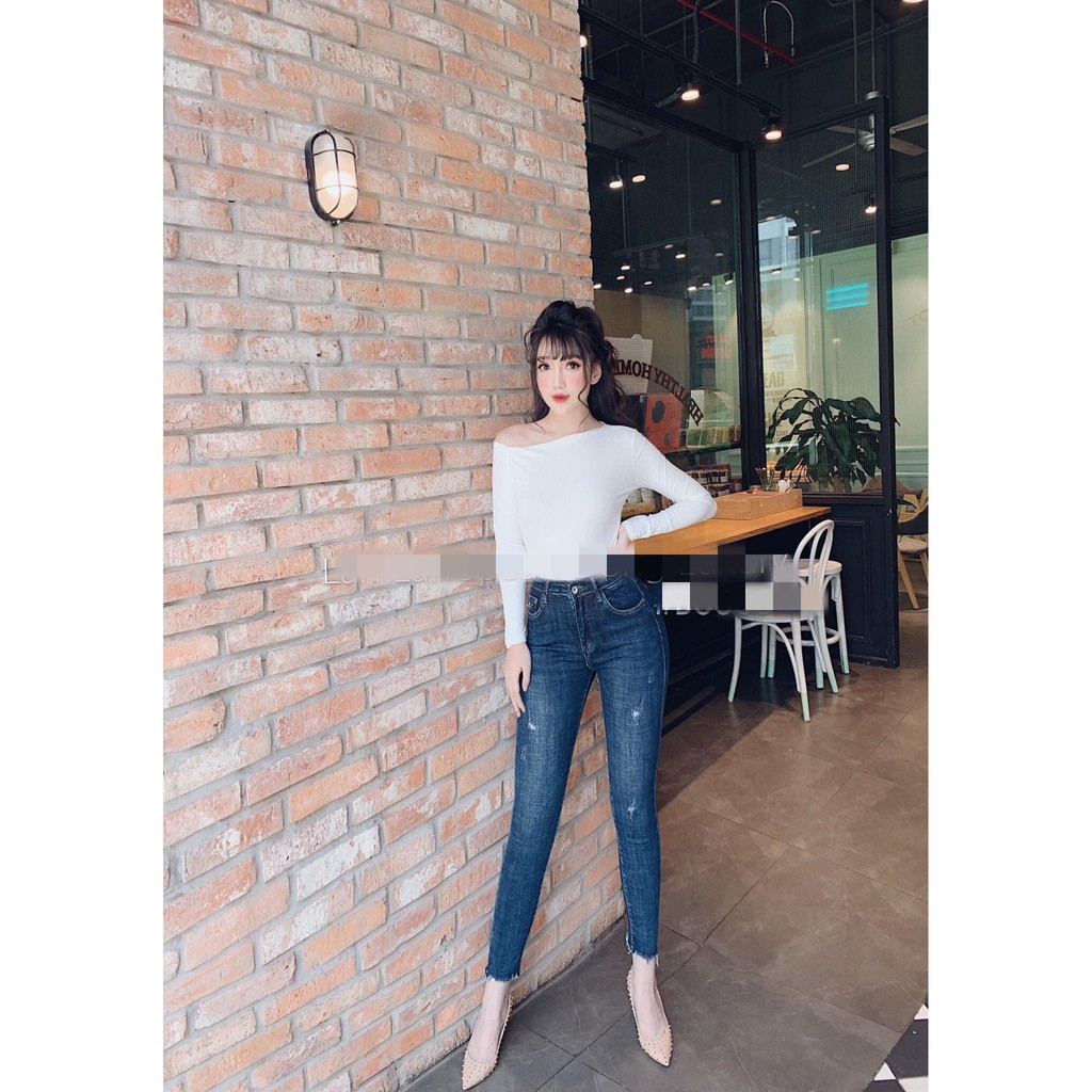 Quần jean lưng cao ôm rốn, chuẩn mẫu mặc, mặc nhìn chân dài, mông tròn ạ!