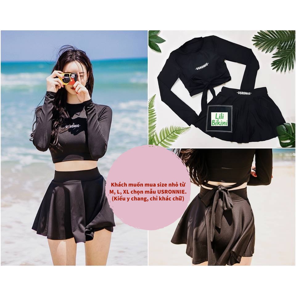 Giới thiệu (Có size nhỏ, big size trên 60kg) Đồ bơi, bikini 2 mảnh tay dài chống nắng cột nơ sau, bộ bơi học bơi đi biển
