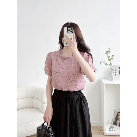 Thời Trang Nữ > Áo > Khác || sm650: áo sơ mi chấm bi dập nổi