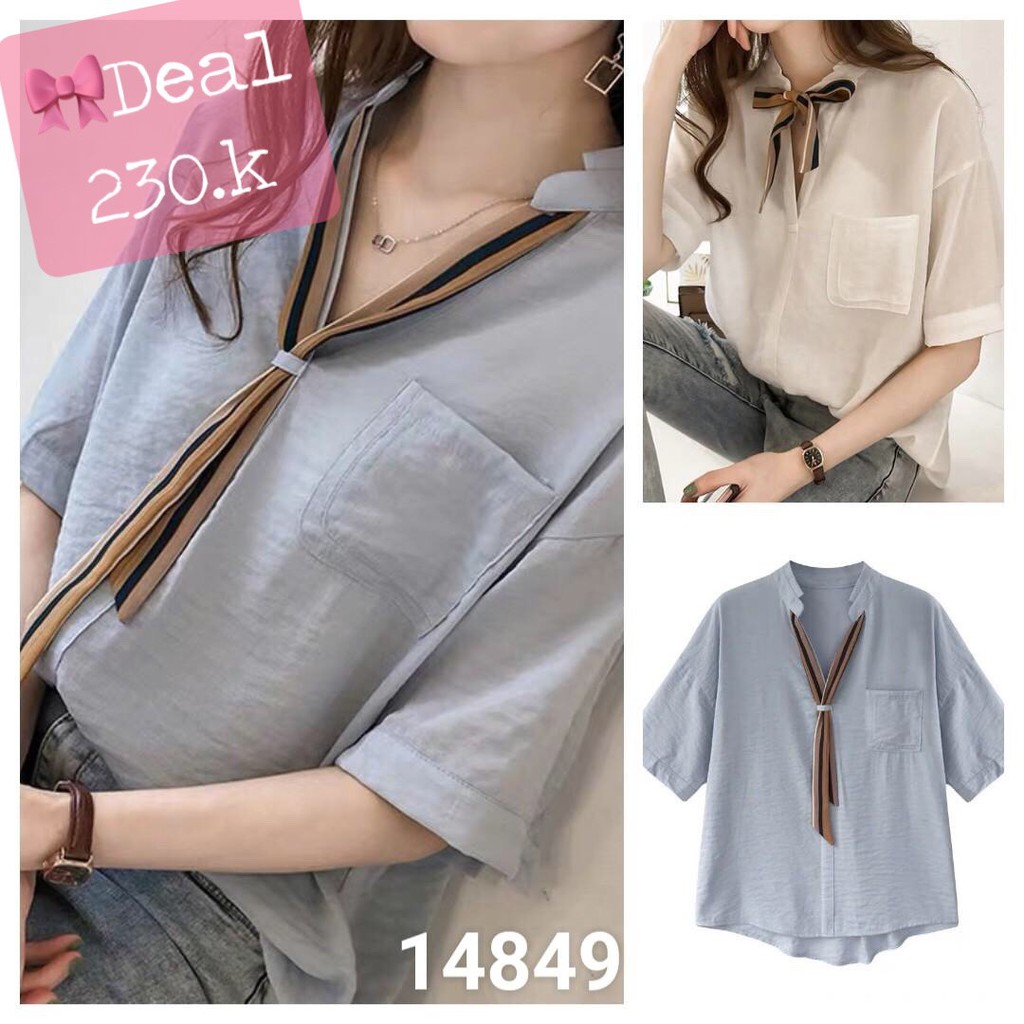 Thời Trang Nữ > Áo > Áo sơ mi || Sơ mi BIG SIZE cổ trụ d â y s ọ c mi công sở 14849