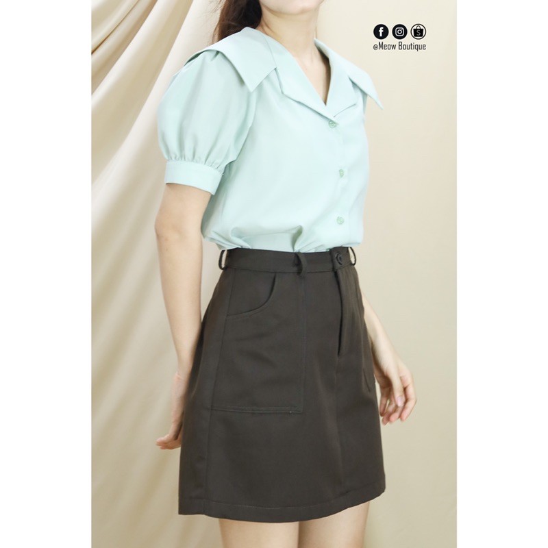 Thời Trang Nữ > Áo > Áo sơ mi || Sơ mi cổ Danton thuỷ thủ tay ngắn Meow Boutique