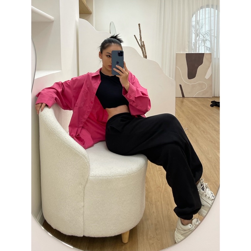 Thời Trang Nữ > Áo > Áo sơ mi || Sơ Mi Hồng Đậm Oversize