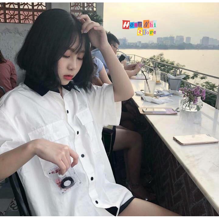 Giới thiệu SƠ MI TAY LỠ DÁNG RỘNG UNISEX PHỐI CỔ 2 TÚI MÀU TRẮNG - SƠ MI MIX TAY LỠ- MM