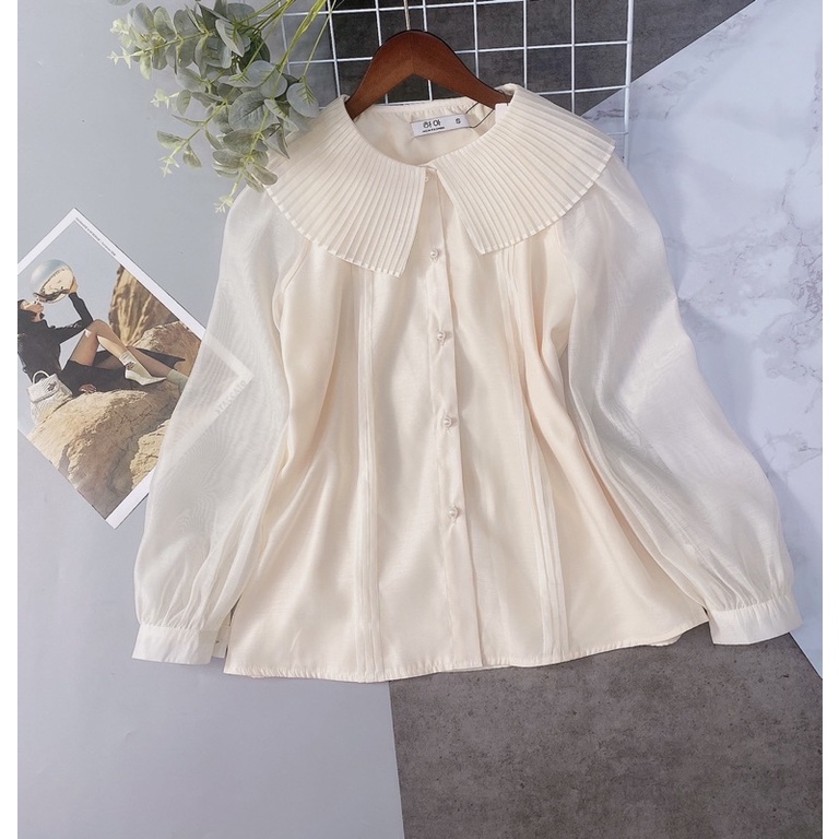 Thời Trang Nữ > Áo > Áo sơ mi || Sơ mi tơ cổ dập ly
