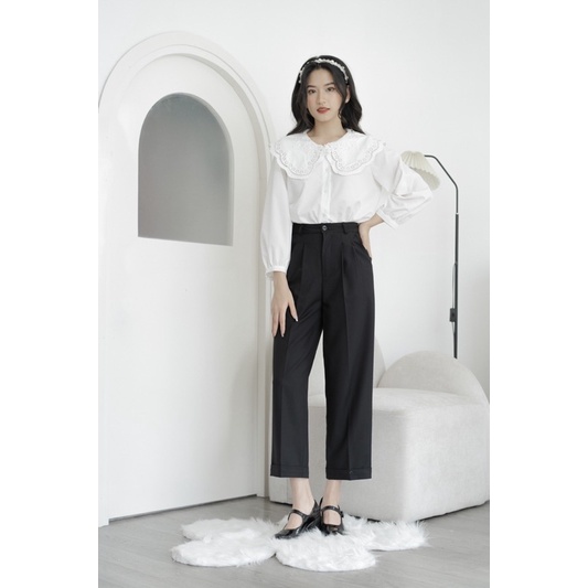 Sơ Mi Trắng Cổ Ren Phom Dáng Basic Cực Kỳ Dễ Mặc Cổ Ren Bản To 2 Lớp Ren Siêu Đẹp