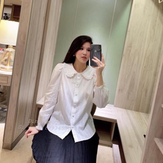 Sơ mi trắng cổ tròn tay bèo chất đũi mềm
