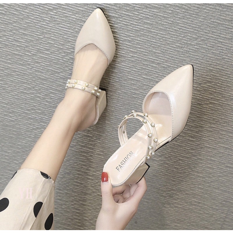 Giới thiệu Sục daFREESHIPSục Nữ Cao Gót guốc nữ cao gót cao 5cm gót vuông da mềm Hàng Chuẩn Size Đế Vững Màu Đen Cực Sang