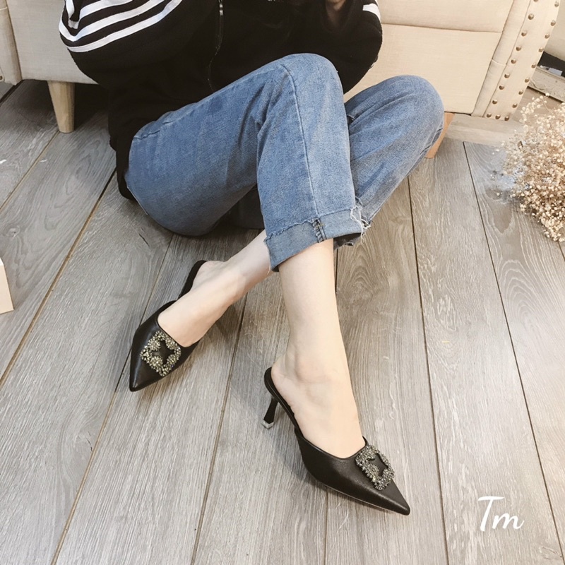 Giày Dép Nữ > Giày đế bằng > Giày sục & Giày búp bê || Sục manolo tag đá vuông gót nhọn fullbox hàng quảng châu cao cấp