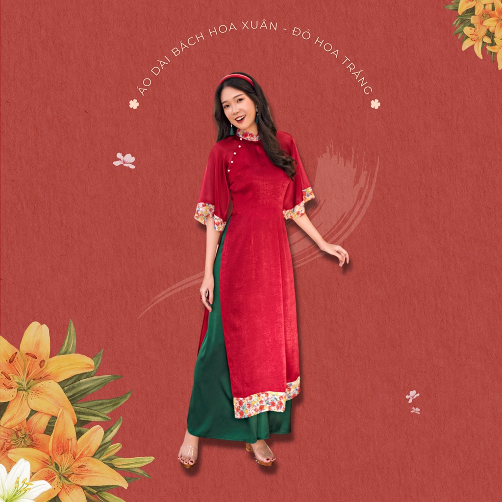 - Sumire Store Áo dài Bách Hoa Xuân - Đỏ hoa vàng - 790.000 (Giá này chỉ bao gồm áo, không bao gồm quần hoặc chân váy mặc kèm)