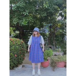Set đầm caro xanh + áo khoác H3331 (+hình thật)