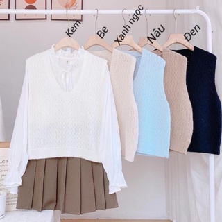 Áo len gile nữ vintage nhiều màu phong cách Hàn Quốc siêu hot