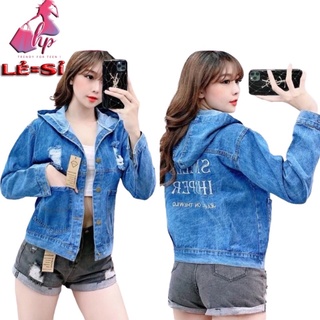 Áo Khoác Jeans Nữ có Nón Mũ Coton Cao Cấp Phối Túi To Cào Rách Thêu Chữ Mẫu Mới-Hàng Có Sẵn bán giá sỉ